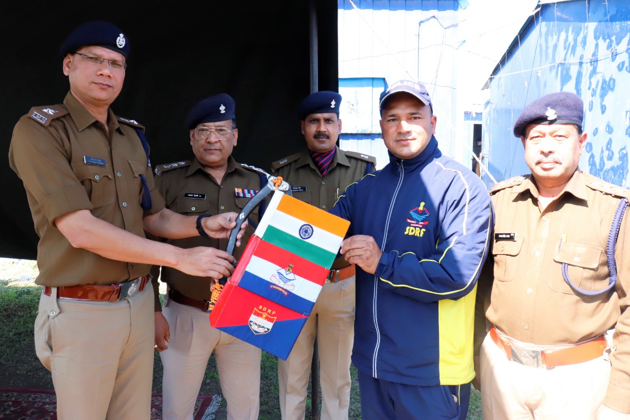 इस अवसर पर सेनानायक SDRF द्वारा आरक्षी राजेन्द्र नाथ को उनके सफल पर्वतारोहण अभियान के लिए शुभकामनाएं देते हुए बताया कि पर्वतारोहण असीमित रोमांच, जोश, मनोरंजन तथा जोखिम से भरा साहसिक खेल है।