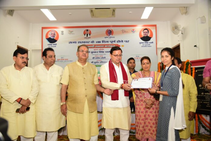 देहरादून : मुख्यमंत्री पुष्कर सिंह धामी ने गुरूवार को सरकार के 100 दिन पूर्ण होने पर मुख्यमंत्री आवास स्थित मुख्य सेवक सदन में ग्राम्य विकास विभाग द्वारा आयोजित कार्यक्रम में बतौर मुख्य अतिथि प्रतिभाग किया।