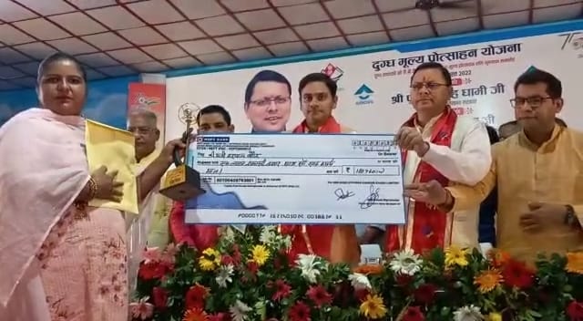 देहरादून: मुख्यमंत्री पुष्कर सिंह धामी ने शुक्रवार को जवाहर नवोदय विद्यलाय रूद्रपुर में डेयरी विकास विभाग द्वारा आयोजित दुग्ध मूल्य प्रोत्साहन राशि भुगतान कार्यक्रम में डीबीटी के माध्यम से दुग्ध उत्पादकों को 22 करोड़ की धनराशि वितरित की।