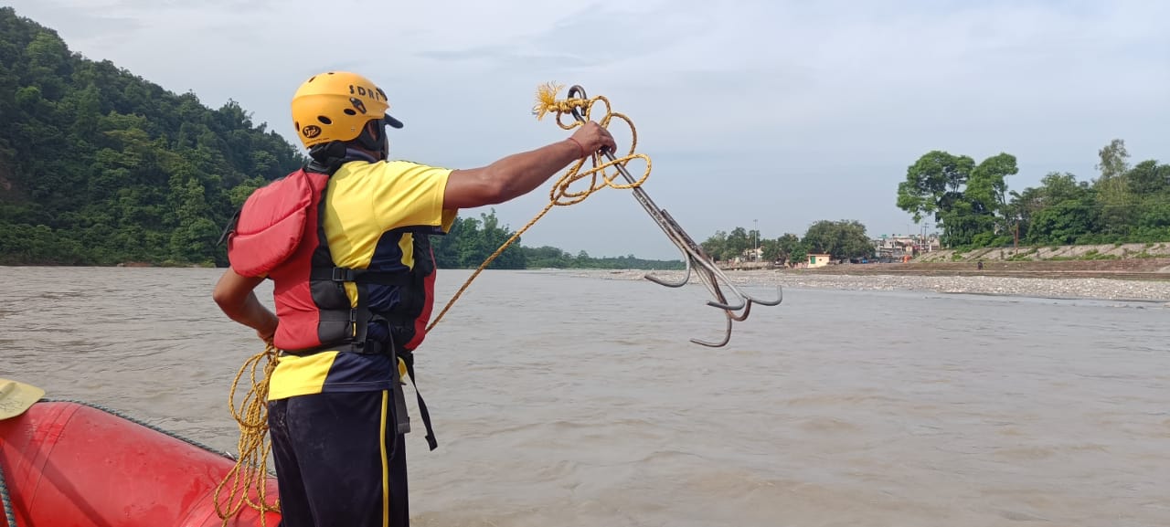 SDRF टीम द्वारा घटनास्थल पर पहुँचकर राफ्ट व सर्चिंग कांटे की सहायता से संभावित स्थानों पर लगातार सर्चिंग की जा रही है।