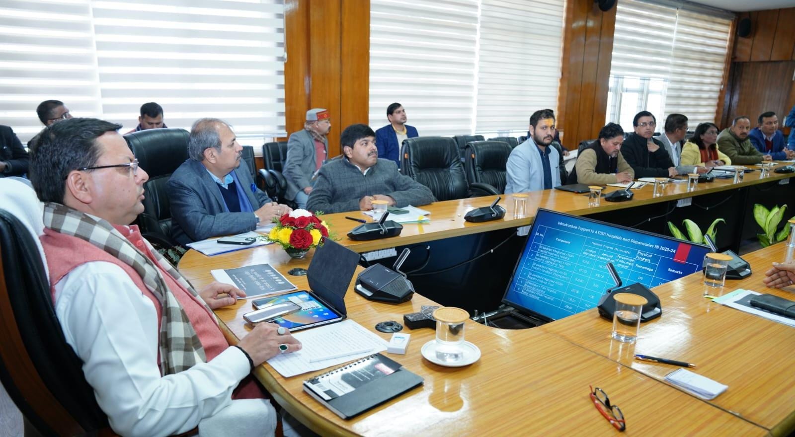 बैठक में उपाध्यक्ष अवस्थापना अनुश्रवण समिति विश्वास डाबर, अपर मुख्य सचिव श्रीमती राधा रतूड़ी, सचिव आर. मीनाक्षी सुंदरम, सचिव आयुष डॉ. पंकज कुमार पाण्डेय एवं आयुष विभाग के अधिकारी उपस्थित थे।