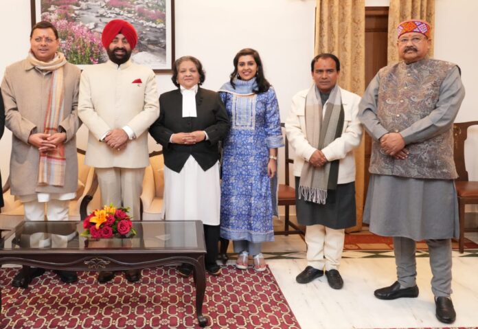 देहरादून। जस्टिस रितु बाहरी ने उत्तराखंड हाईकोर्ट के मुख्य न्यायाधीश पद की शपथ लेने बाद गवर्नर लेफ्टिनेंट जनरल गुरमीत सिंह(सेनि), मुख्यमंत्री पुष्कर सिंह धामी, कैबिनेट मंत्री सतपाल महाराज ने जस्टिस बाहरी से यूसीसी सहित अनेक बिन्दुओं पर चर्चा की और जस्टिस बाहरी को उत्तराखंड हाईकोर्ट के मुख्य न्यायाधीश बनने पर बधाई दी।