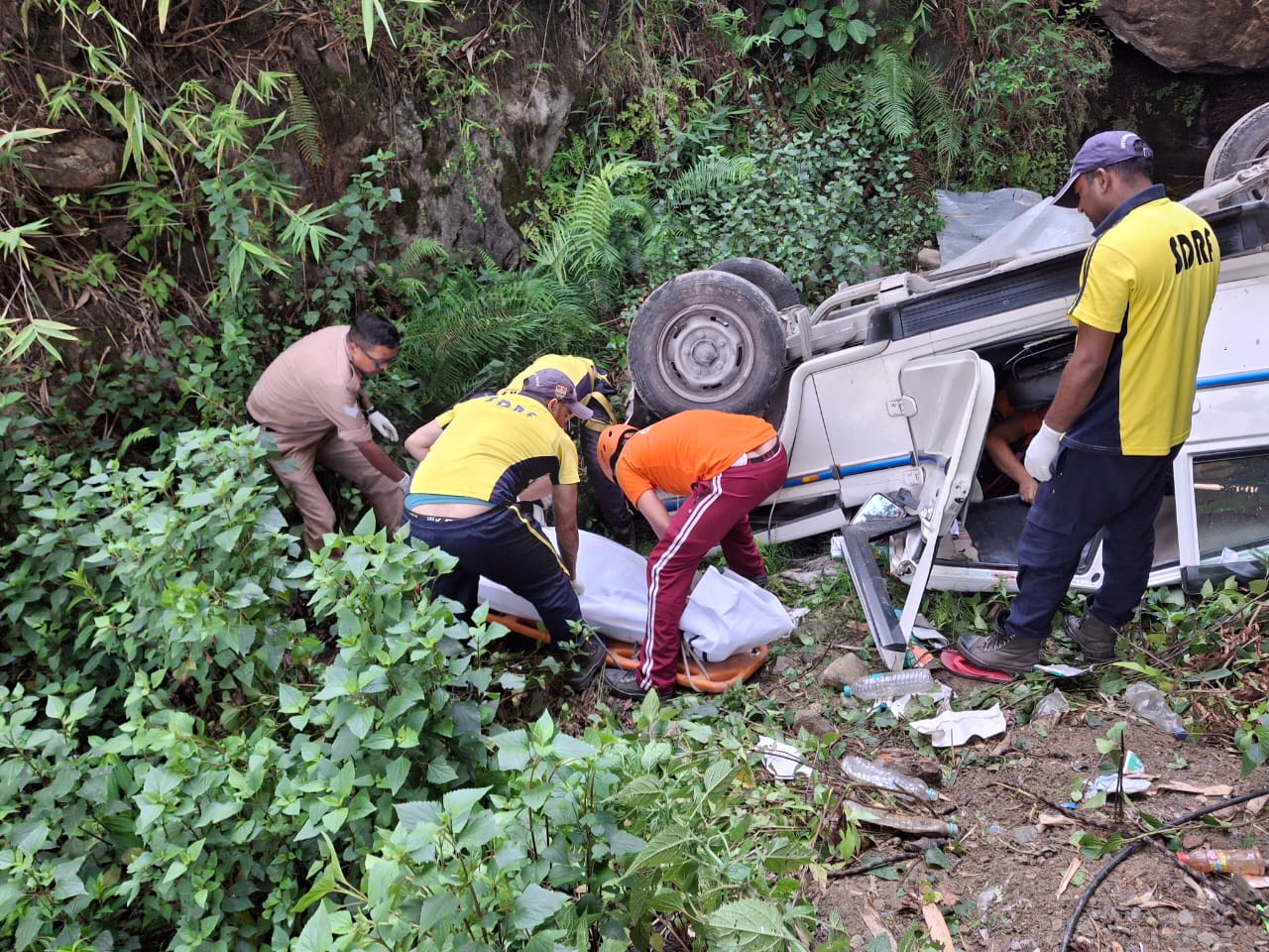 उक्त वाहन बोलेरो नंबर (UK11TA-2301) जो अनियंत्रित होकर लगभग 50 मीटर पुल से गधेरे में गिर गया था। वाहन में दो व्यक्ति सवार थे जिनकी घटनास्थल पर मृत्यु हो गई थी।